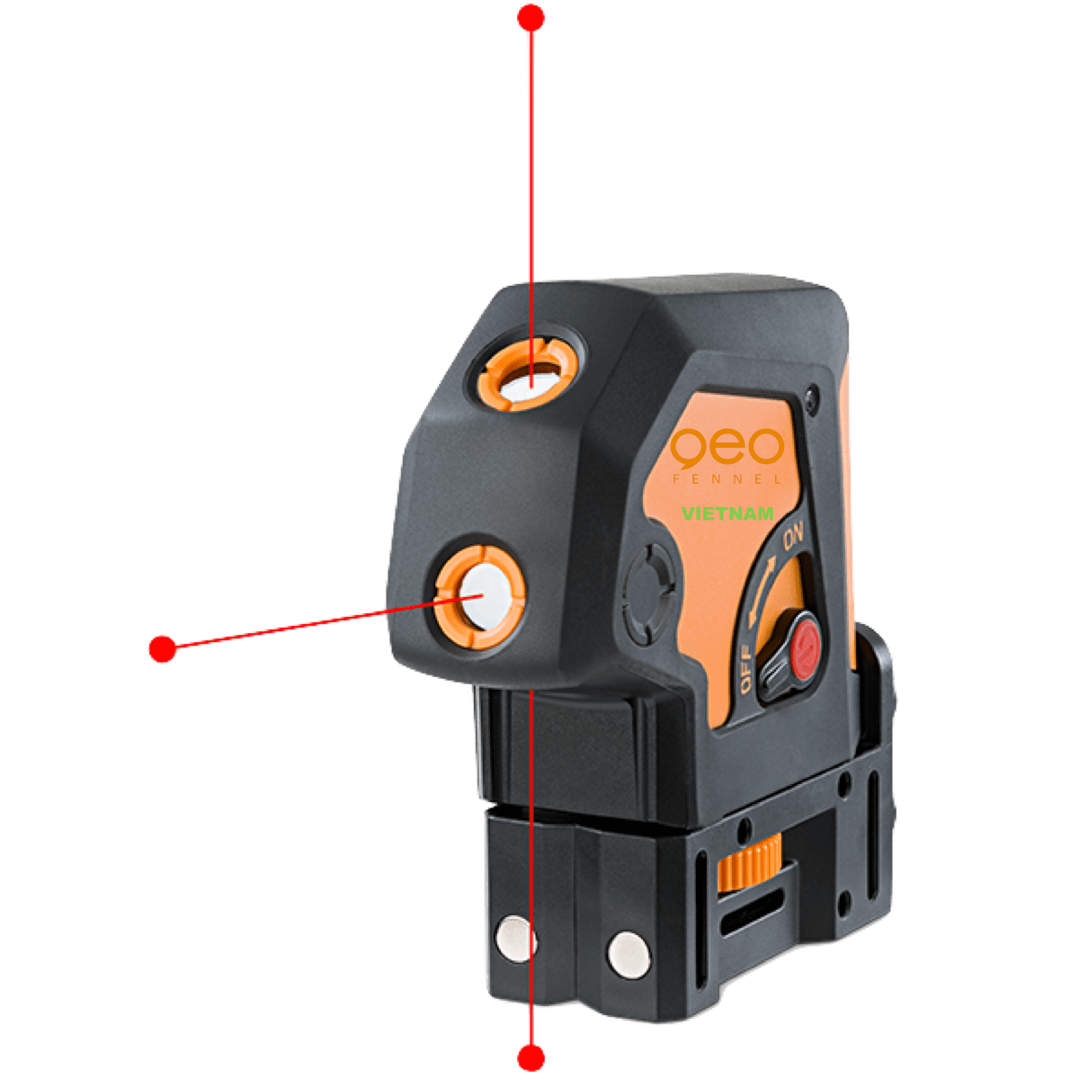 Đế máy tích hợp nam châm giúp treo máy vào cột sắt dễ dàng. Bên cạnh đó, đế máy còn có lỗ treo máy bằng đinh và lỗ luồn cáp buộc máy vào cột. Khi máy vượt tầm tự cân bằng sẽ phát âm “tít tít" để báo cho người dùng cân lại mặt đặt máy. Lập lòn laser GEO3P được thiết kế nhỏ gọn, cầm tay, cơ động và dễ dàng thao tác.